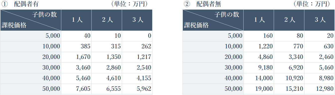 ※2 配偶者有では配偶者の税額軽減を法定相続分まで活用するものとする。
